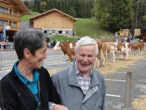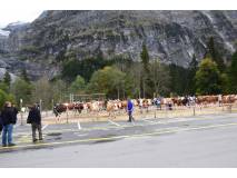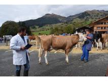 Auf dem Parkplatz des Hotels Wetterhorn fand jetzt die Viehschau statt. Mittlerweile hatten die Landwirte von Grindelwald Ihr Vieh auf den Platz geführt. Ein schönes Bild, die frisch geputzten gestylten Kühe und im Hintergrund das Wahrzeichen von Grindelwald das Wetterhorn. Die Bewohner und Angestellten vom Pflegeheim Hohgantblick freuten sich sehr vor Ort der Viehschau bei zu wohnen. Alles war Rollstuhlgängig und so konnten alle live ganz nah dabei sein.