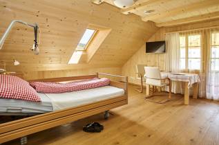 Die Wände und Decken sind mit Fichtenholz getäfert, die Böden aus massivem, rutschfestem Parkett. Wir bieten komfortable, sehr geräumige Einzelzimmer mit grosszügiger Terrasse und integrierter Nasszelle an. Die Raumgestaltung ist traditionell rustikal. Wir bemühen uns, auch punkto Möblierung persönliche Wünsche zu berücksichtigen.
