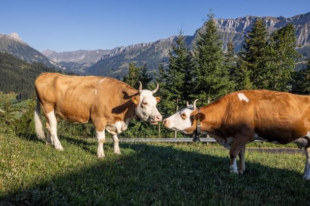 Gerne dürfen Tierliebhaber bei den Arbeiten im Stall mithelfen und mit den Kühen, Rindern, Kälbchen, Hühnern und Katzen Zeit verbringen.